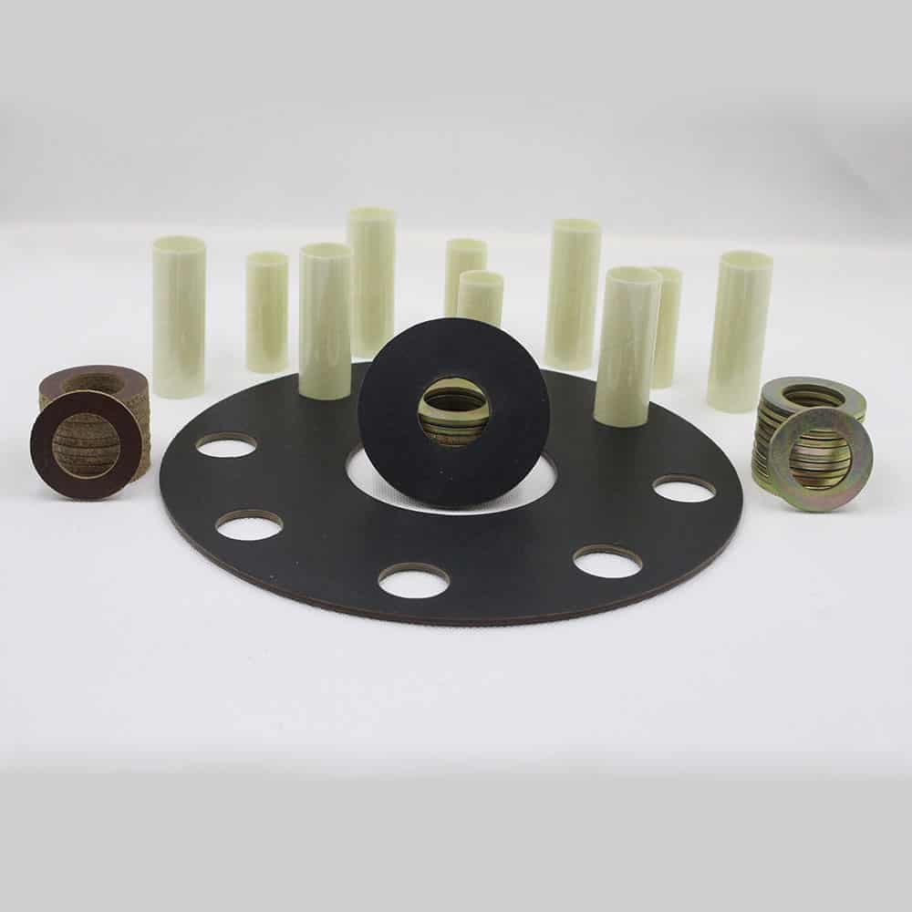 واشرهای عایق بندی از متریال هایی مانند فنولیک، G7 وG10 ، G11 و مایلار هستند و وظیفه ایجاد عایق الکتریکی بین پیچ و فلنج را بر عهده دارند. ضخامت استاندارد برابر با 3 میلیمتر است. واشرهای زیر مهره در اندازه های مختلف متناسب با ابعاد پیچ قابل تهیه می باشند. واشرهای فلزی استاندارد از جنس فولاد ضد زنگ و کربن استیل با روکش زینک هستند که اندازه آن برابر با اندازه واشرهای عایق است.